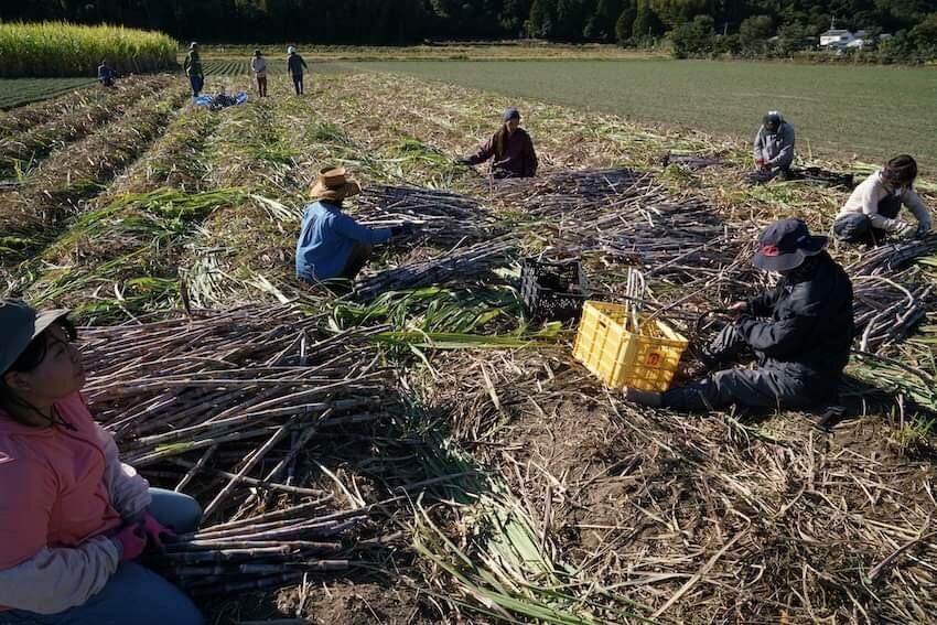 丁寧にとる昔ながらの製糖方法